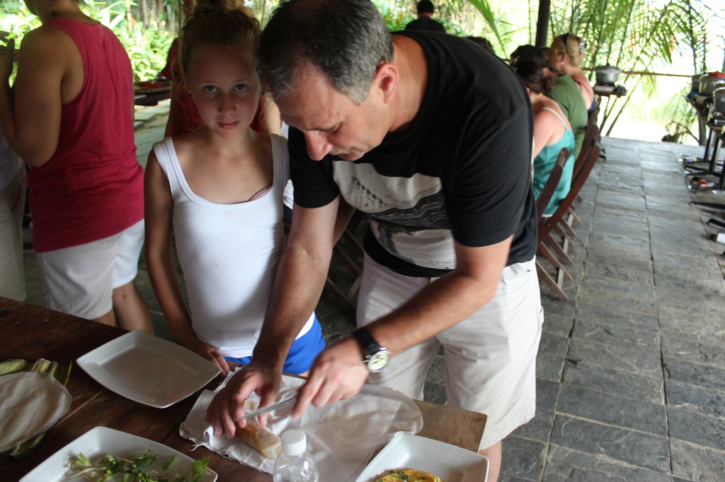 Under the expert guidance of the Red Bridge chef, we watched a masterful demonstration of each dish before stepping up to prepare the same dishes ourselves. The class also included a delightful introduction to the art of Vietnamese food carving, where we learned the intricate skill of plate decoration. After our hard work, we gathered together to savour the delicious meals we had created. It was a fun and memorable family activity, and for me, it was another exciting item checked off my bucket list!
