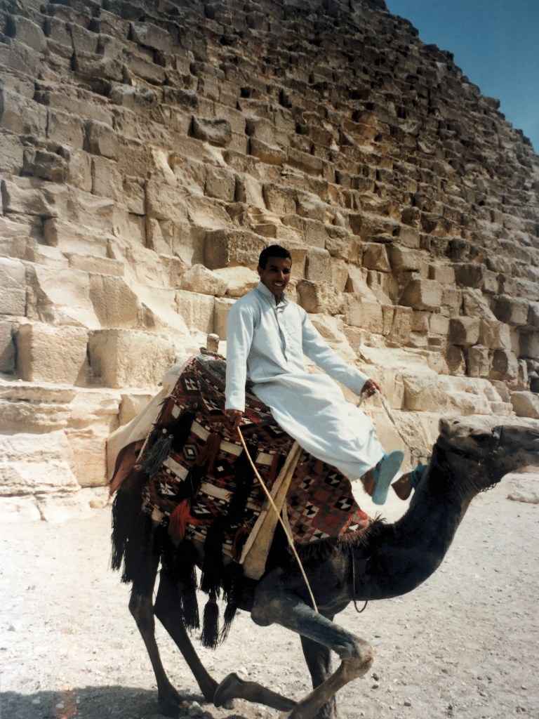 Egypt was a place that fascinated me from a very young age and it was as far back as March 1992 when I ticked visiting the Pyramids of Giza off my bucket list. Upon approaching the Pyramids, they didn’t seem as big as I had imagined, but as we got closer, I was amazed at their size. Walking around these impressive structures had me marvelling at the size of just one brick and how many of those massive bricks made up the entire Pyramid. My immediate thought went to the labour and manpower required to build these enormous structures. I tried to imagine the Egyptians erecting them by hand without the aid of modern-day machinery. Our guide explained a mountain of dirt continued to grow alongside the pyramid as it got taller to transport the stone bricks, and once completed the dirt was removed.