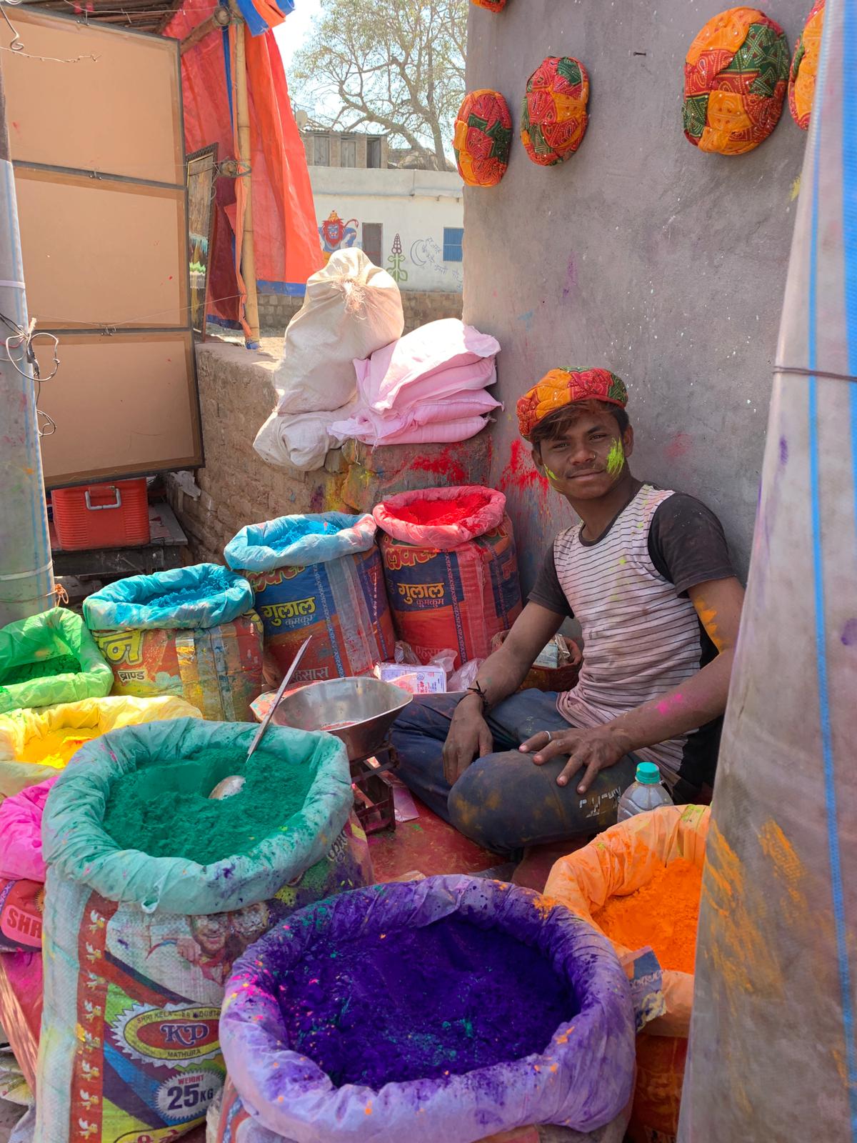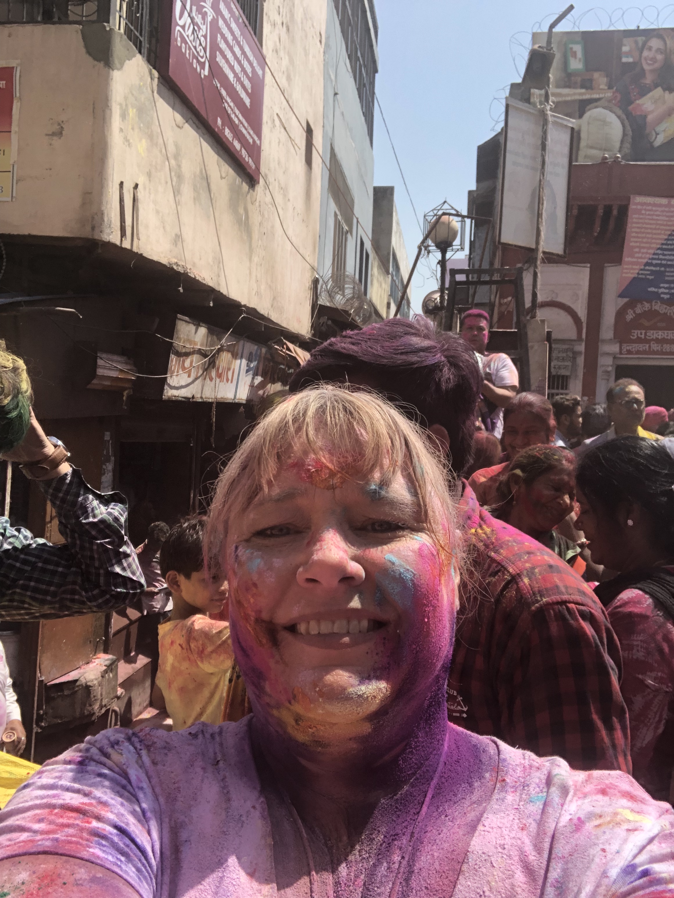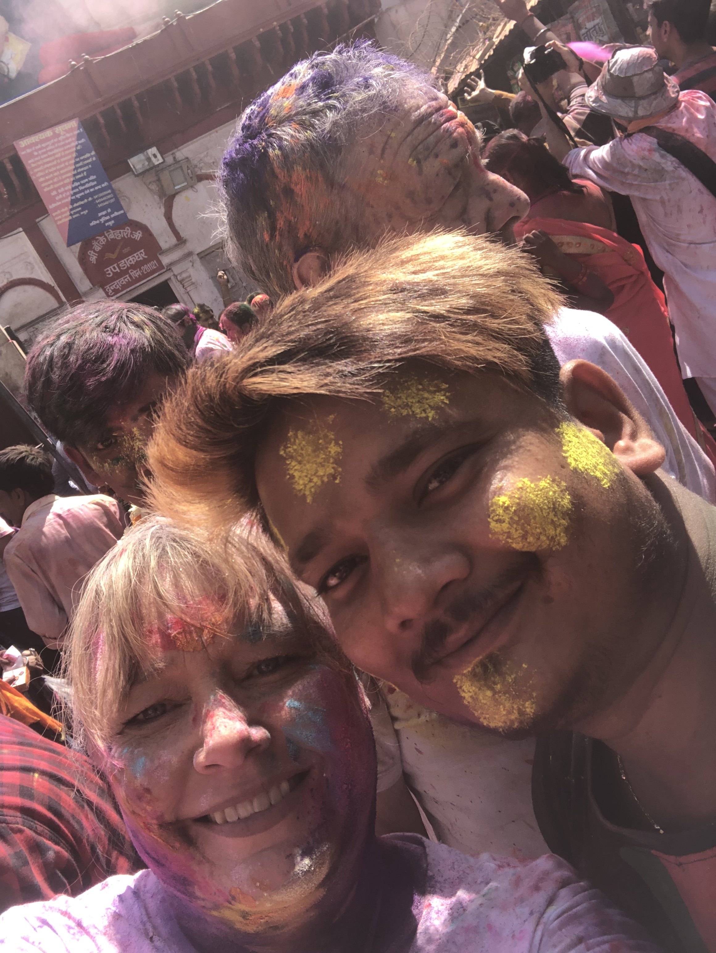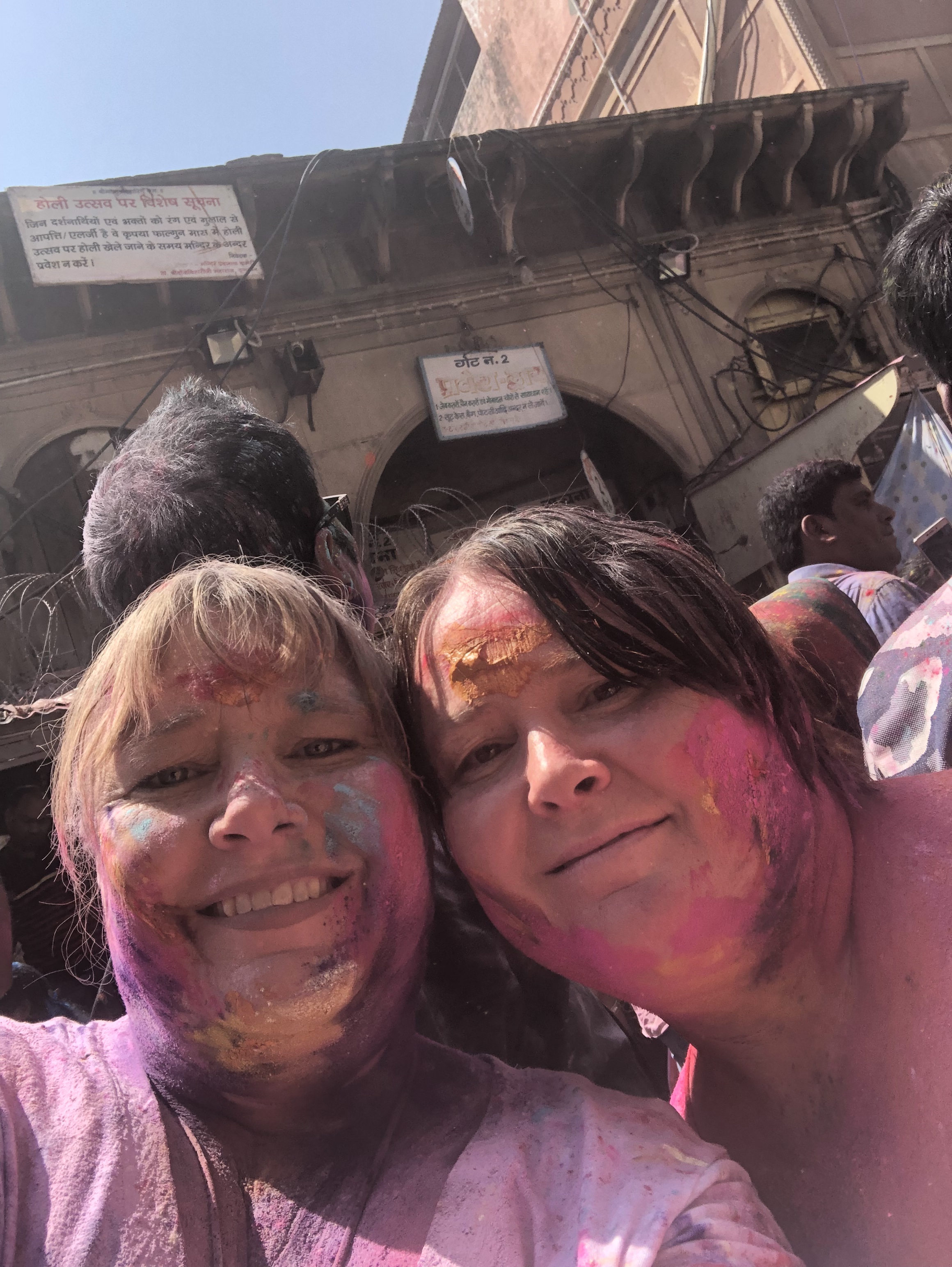 The Holi Festival in Vrindavan, the birthplace of Krishna, was the true highlight of our journey, and the very reason my sister and I came. Dressed in white pants and T-shirts, we arrived by tuk tuk with a growing sense of anticipation, as the town already seemed to vibrate with colour and energy even before we stepped into it.