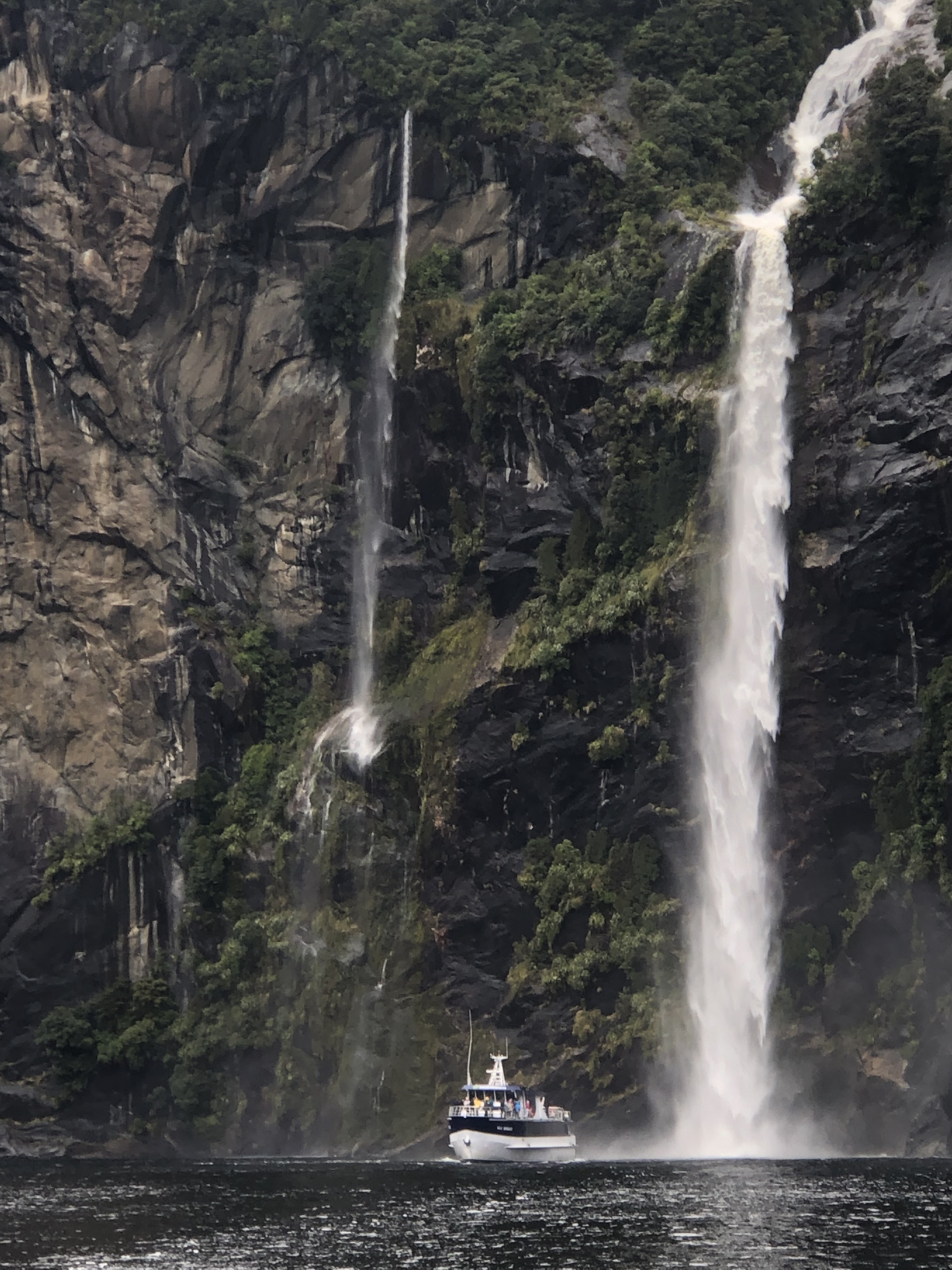 We opted for a scenic boat cruise through the fiord, which is by far the best way to experience its scale and beauty. As the boat glided through the calm waters, towering cliffs rose on either side, streaked with waterfalls fed by the region’s high rainfall. The highlight was when the vessel sailed right under one of the larger waterfalls, the rush of water falling over our heads and the spray hitting our faces made it an unforgettable, immersive experience. From that moment, the scale of Milford Sound and the sheer power of its waterfalls became truly tangible.