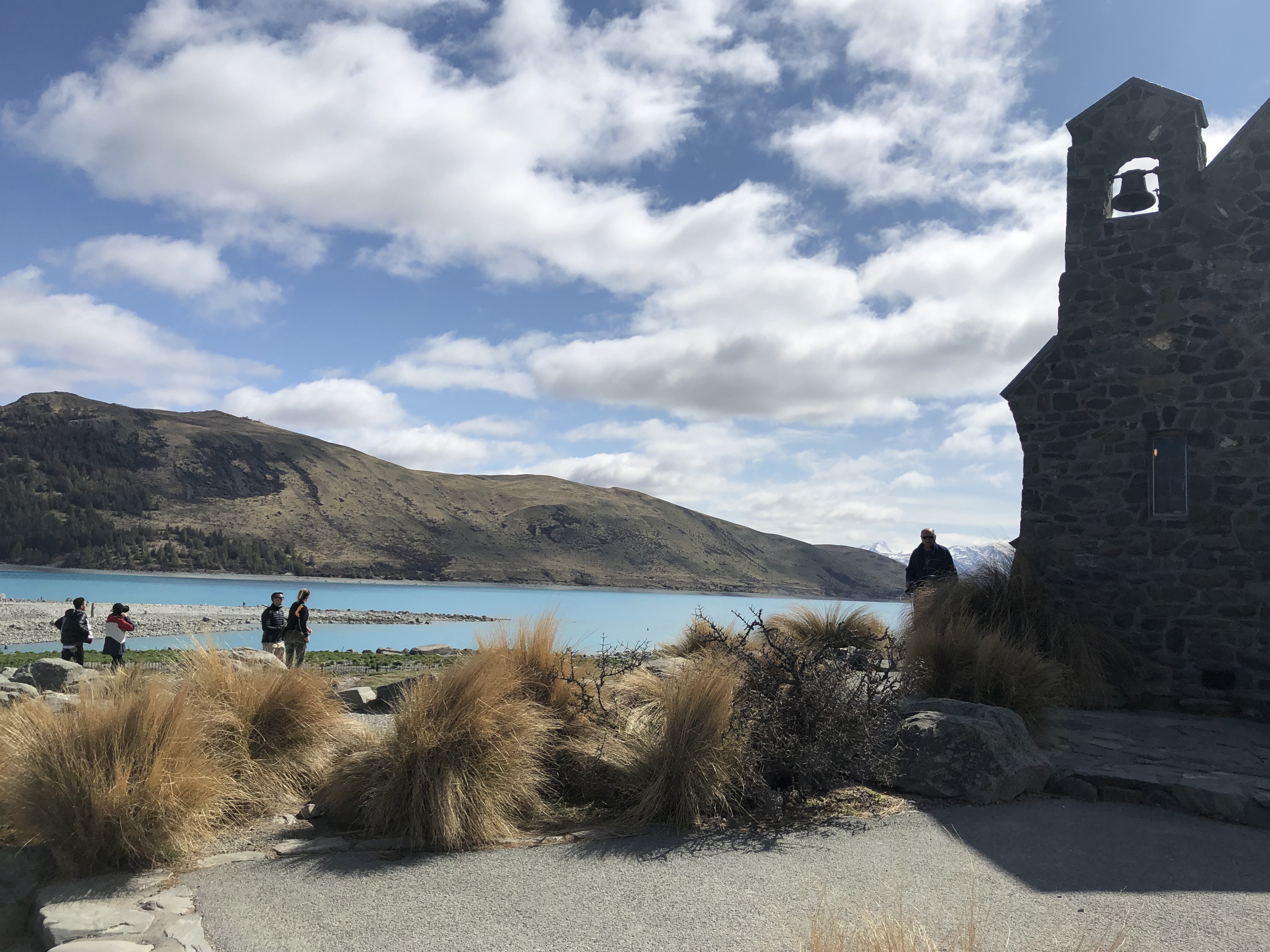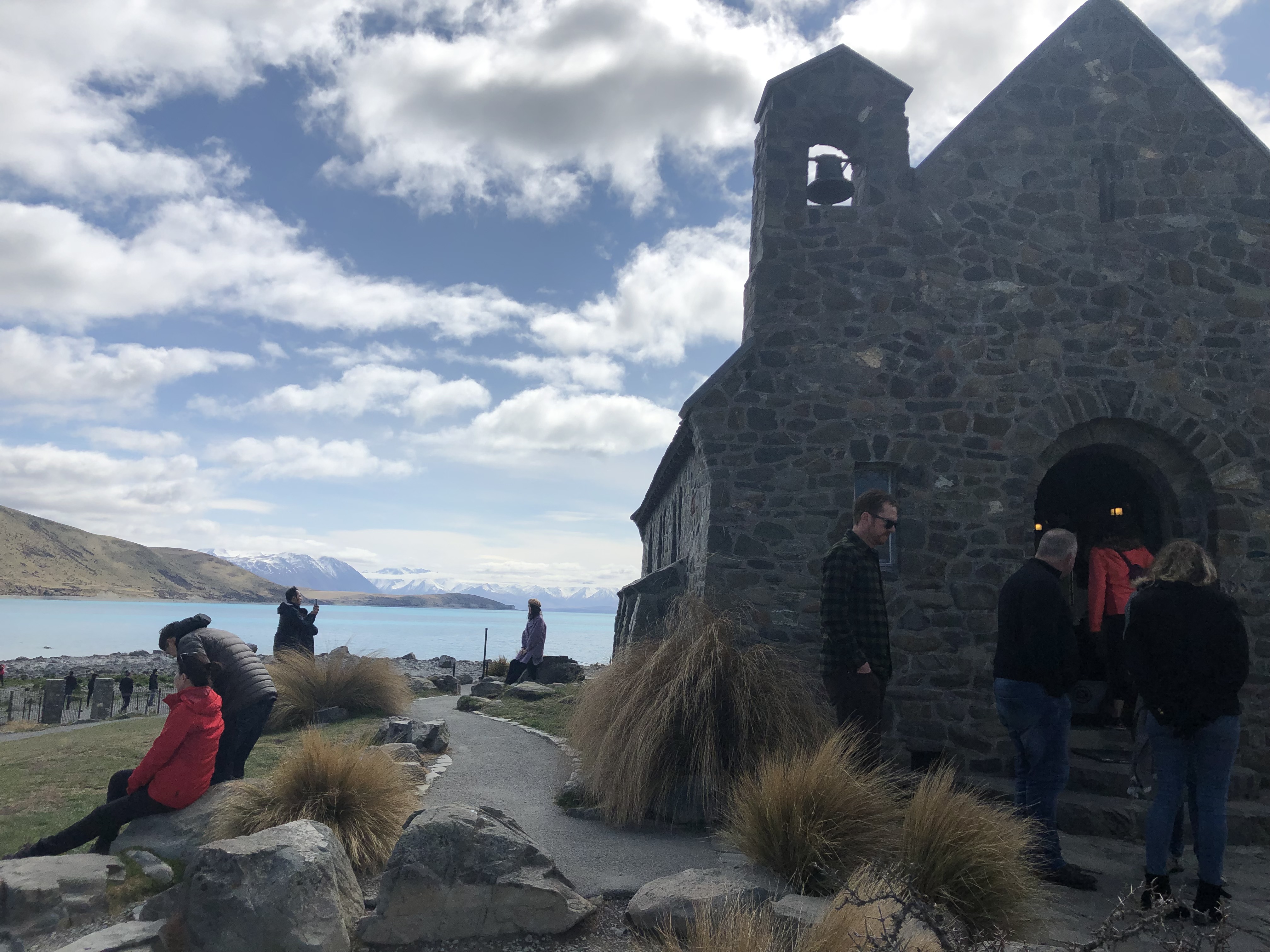 We spent time walking along the lakeshore, climbing over smooth rocks and taking in the ever-changing colours of the water as the light shifted throughout the day. One of the most recognisable landmarks here is the Church of the Good Shepherd, a small stone church right on the lake’s edge that perfectly frames the surrounding landscape.